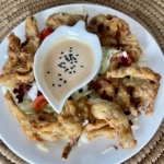 Mini skewers of spicy plan Vchunks-perfect for sharing or snacking.